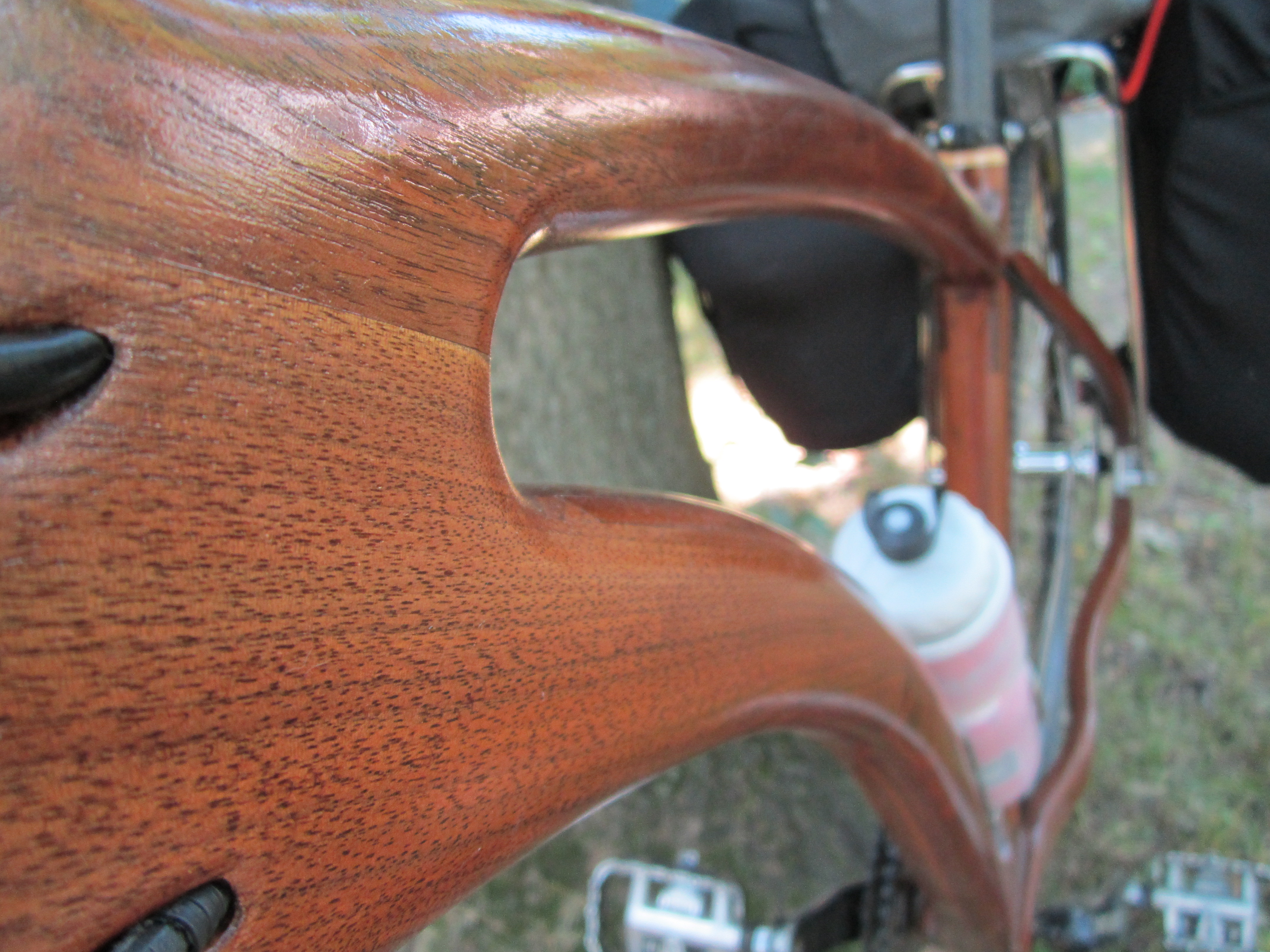 Our adventure was delayed for about six hours as our bus broke down in Des Moines IA. We started pedaling from Pinedale WY around 3:30 in the afternoon and headed north toward the Grand Tetons. We rode paved roads for the first twenty miles then we turned on to the ubiquitous, severely wash-boarded gravel roads that Wyoming is famous for. The travel fatigue and the increase in elevation made for a very challenging first day. It felt like I was pedaling with a plastic bag over my head and I was breathing through a soda straw. The next day I was much more acclimated. To say the scenery was spectacular would be a gross understatement. We pedaled a combination of gravel roads and dirt trails almost always wash-boarded. At the end of each day, my arms felt like I had been operating a jack-hammer. I was exceedingly thankful to have a shock fork and “29er” wheels which rolled over the mess as well as could be expected. We covered about 190 miles in six days. That doesn’t seem like much but on a overloaded mountain bike on dirt with some extreme climbs it was enough. The wooden frame survived the abuse of the trip. Highlights include: seeing moose, alpine sheep, wolves and bears, catching some stunningly beautify rainbow trout on my travel-fly-rod. Eating freshly caught trout, wrapped in wet grass and roasted in the campfire, jumping off a bridge into the frigid Green river, “rafting” down the Green river on our air mattresses, and most of all bonding with a bunch of guys the have a passion for the outdoors, adventure and most importantly a relationship with Jesus.
