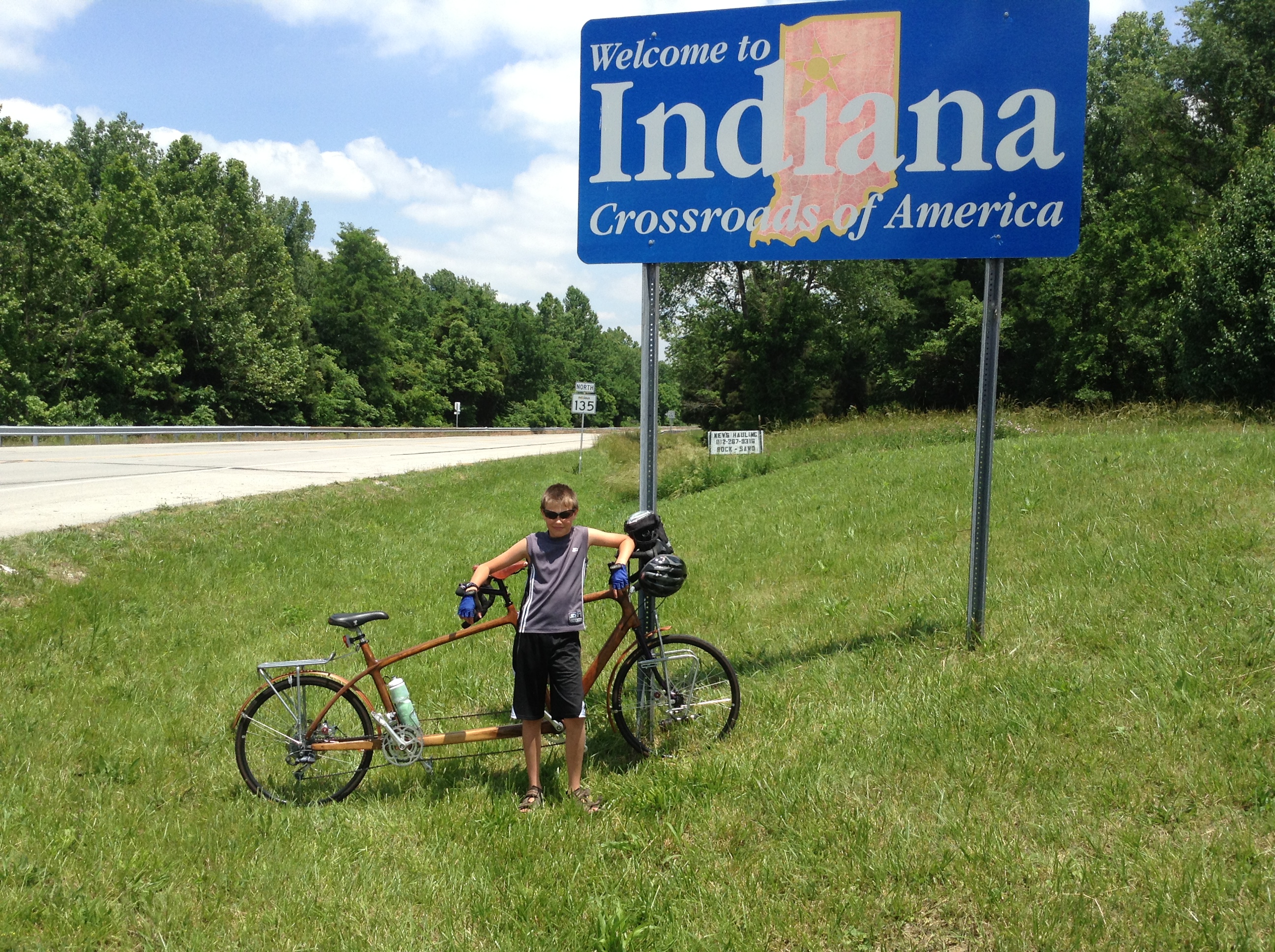 Bob Braisted is a friend that is closer than a brother. We have been friends since 1983. We cycle toured Europe in 1989 along with my brother, Jack. August of 1990, Bob was in my wedding, and in September of 1990, I was in his when he married Michelle. He is truly a lifelong friend. He moved to Nashville, TN in 1995, and we still try to get together several times a year. Bob’s mom, Joanie, passed away on May 19, and five days later, my mom passed away. Bob was the first one I called when I heard the news, and we had a good cry over our mutual grieving situations. The service for Joanie will be this Wednesday, and it’s killing me to not be there. I am also seriously struggling with grief, compounded by not having my family, my father and my siblings to go through this process with. Benjamin is great, but he doesn’t quite understand, so it has been a painful few days for him as well. I had a fitful night last night, pouring over maps and strategizing, seeing if I could find any way to make it up north to attend Joanie’s memorial service and be with my family. I finally decided I could hitch-hike to Nashville. Bob is leaving from Nashville to come to Ohio on Tuesday, so if I could get there somehow today, I could just ride along with him and his family. I was agonizing over this idea because on one hand, it meant cutting out part of our trip, but on the other hand, it would be an opportunity to be with my loved ones during this difficult time. So I called Bob to pitch the idea, and he immediately expressed interest in helping out. He said, “I’m heading down. Just tell me where you are, and I’ll come and pick you up.” In the meantime, I was trying to find a ride up north to save some distance because we were still a good three and a half hours from Nashville. Ben and I did something a little bit risky and probably illegal. We pedaled our bike down the interstate ramp of I-59 and stuck our thumbs out. I have hitchhiked on my own a few times, and it’s not great fun, but it’s do-able. Having a ten-year-old along with you when you’re doing it just seemed wrong. After about 20 minutes without any response, we decided this wasn’t worth it. We pedaled back up the ramp and started to ride our bike along parallel to I-59 as far as we could to not only save some miles but also give us something to do for the next three and a half hours. Bob met us around 3:30, and we loaded up our bike and panniers in his van and drove back to Nashville. The cycling part of this adventure is on hold for at least four days.