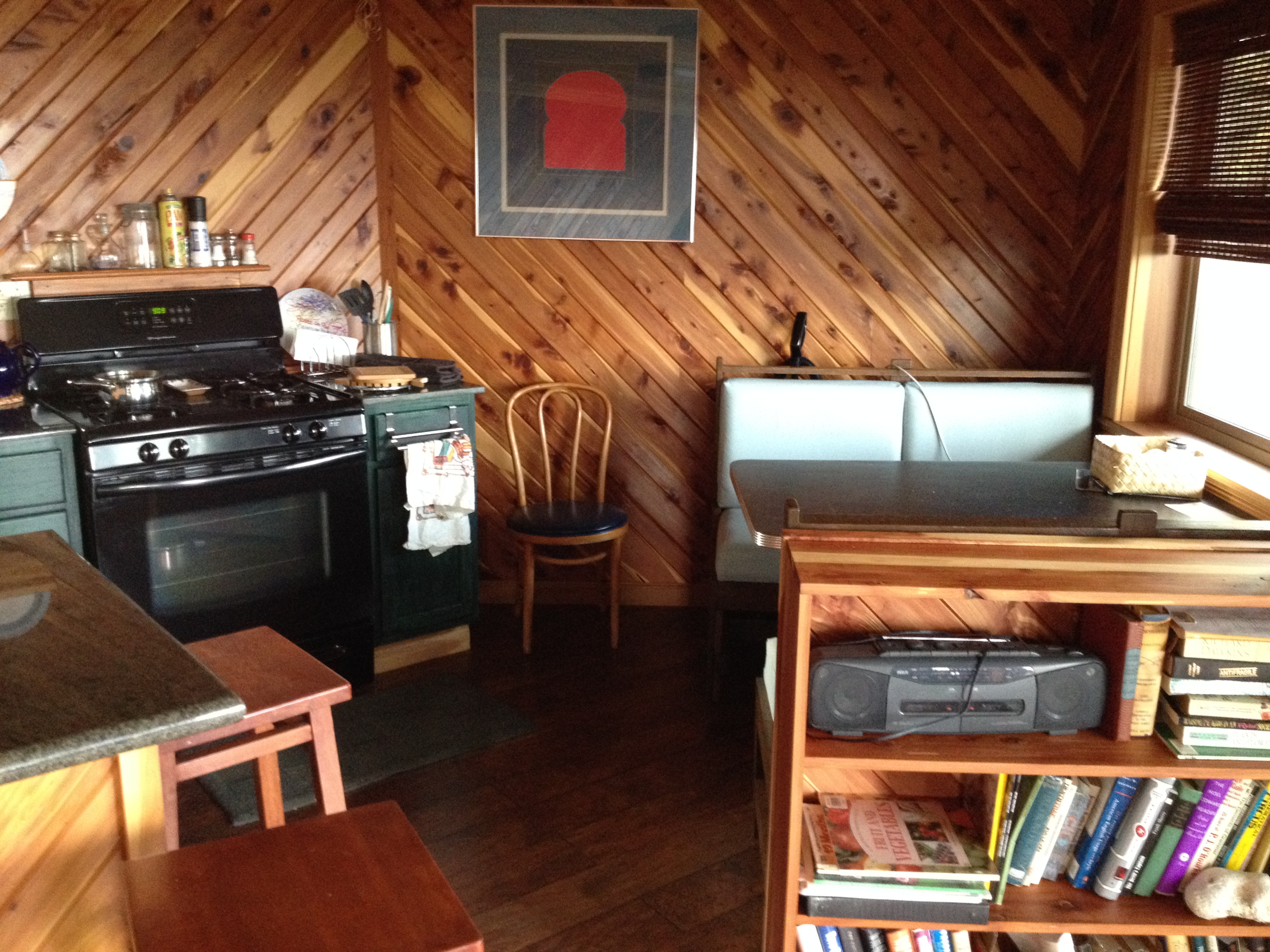The Warm Showers is a free worldwide hospitality exchange for touring cyclists. People who are willing to host touring cyclists sign up and provide their contact information: (https://www.warmshowers.org/). We have been part of the network for a little more than a year. About a dozen cyclists have used our home for a “warm shower” and we always throw in a meal or two, a real bed to sleep in, use of our washer & dryer, use of a car to run errands, repair their bikes etc. In other words, we spoil them. In my mind it is paybacks for the many times that strangers have kindly taken care of me and my family when we were cycle-touring. We have met some very interesting people and have heard some fascinating stories from our guests. Today I am on the receiving side of the warm showers network for the first time. Michael Goode is a retired attorney / businessman. His wife, April, is a retired public defender. Their home is in a private community, located on a ridge that overlooks the Tennessee River. Michael met us at the base of the ridge sparing us the agony of climbing some serious heart-bursting hills. Benjamin was spellbound when we first entered their home. Later he proclaimed it to be “the coolest house ever”. Michael started with a rather humble weekend cottage and added some extremely interesting features over the course of a couple decades. He did all of the design and a lot of the construction himself. He incorporated a lot of surplus and “found” materials into his house. Some noteworthy features include a multitude of French doors, gigantic exposed douglas-fir floor joists, real wood paneling, a room that resembles a café complete with a booth, roof-top garden and huge windows that take advantage of the stunning view overlooking the Tennessee River. We enjoyed a grilled chicken dinner and salad harvested from their roof-top garden with fresh picked strawberries for dessert. We did our laundry with a real washing machine, as opposed to rinsing our clothes out in a sink, for the first time in 6 days. Michael and April were very kind and gracious warm showers hosts. It was a welcome treat because today’s ride was challenging. It was well into the 80’s, bright sunshine and hilly!