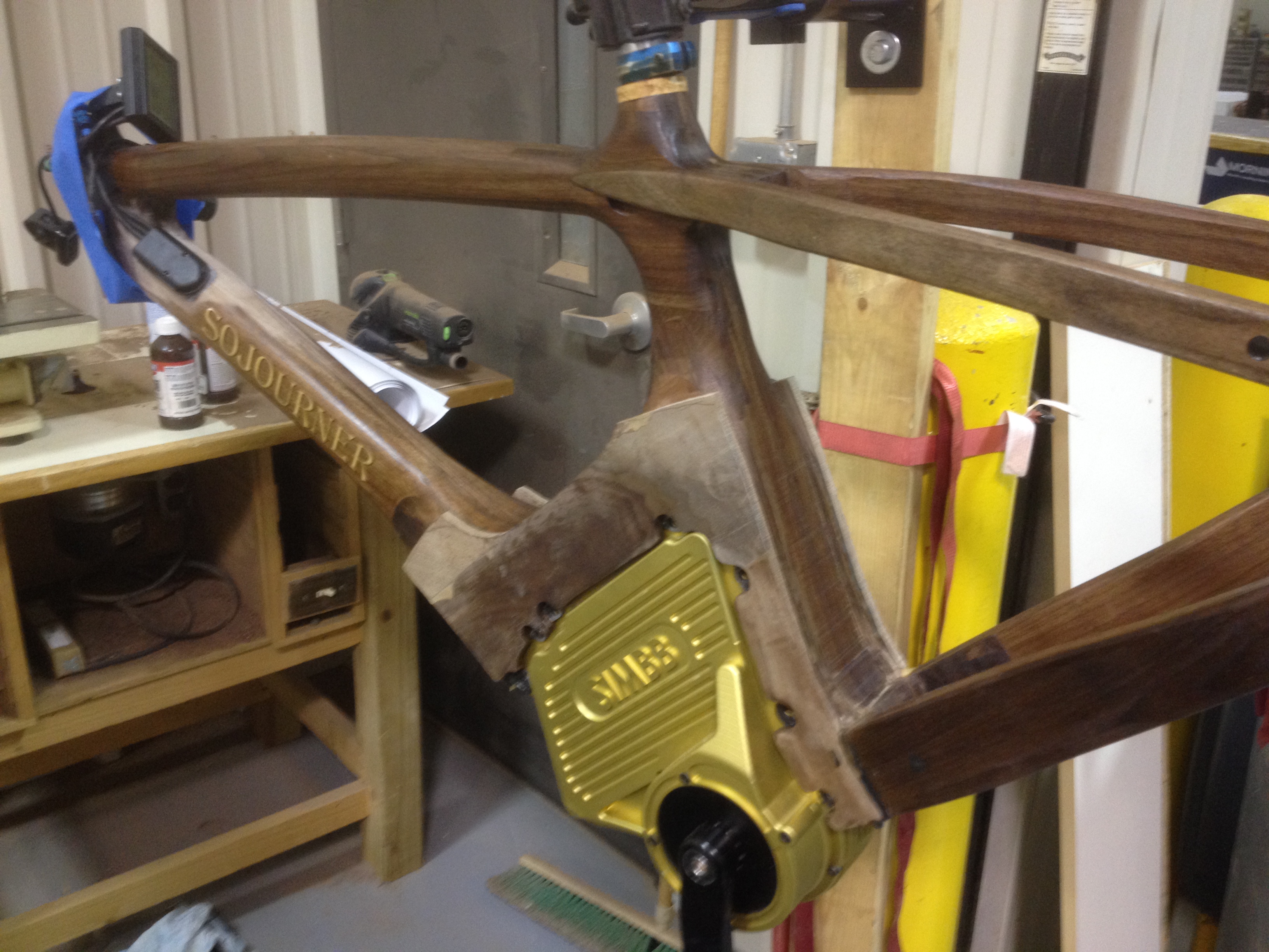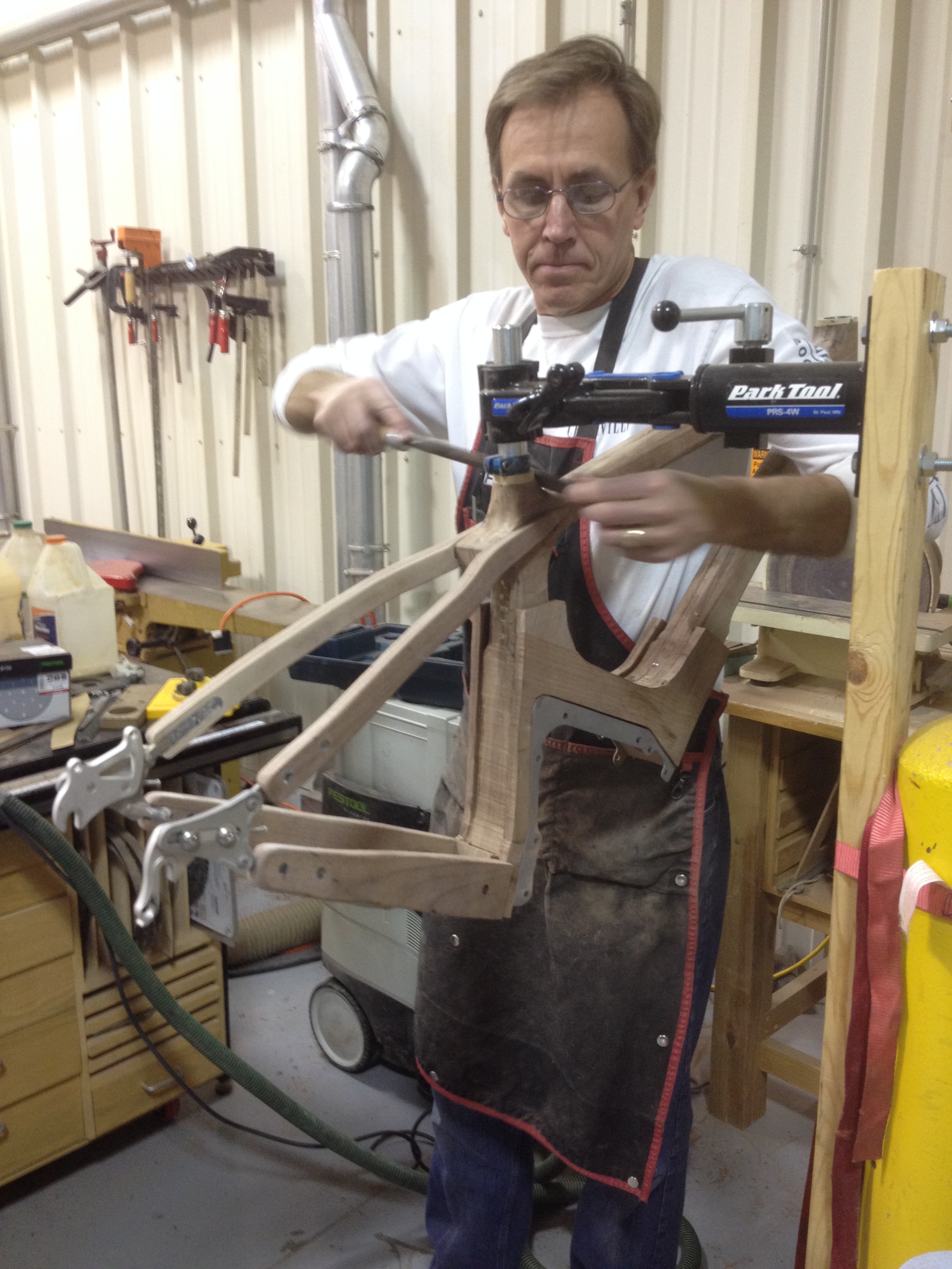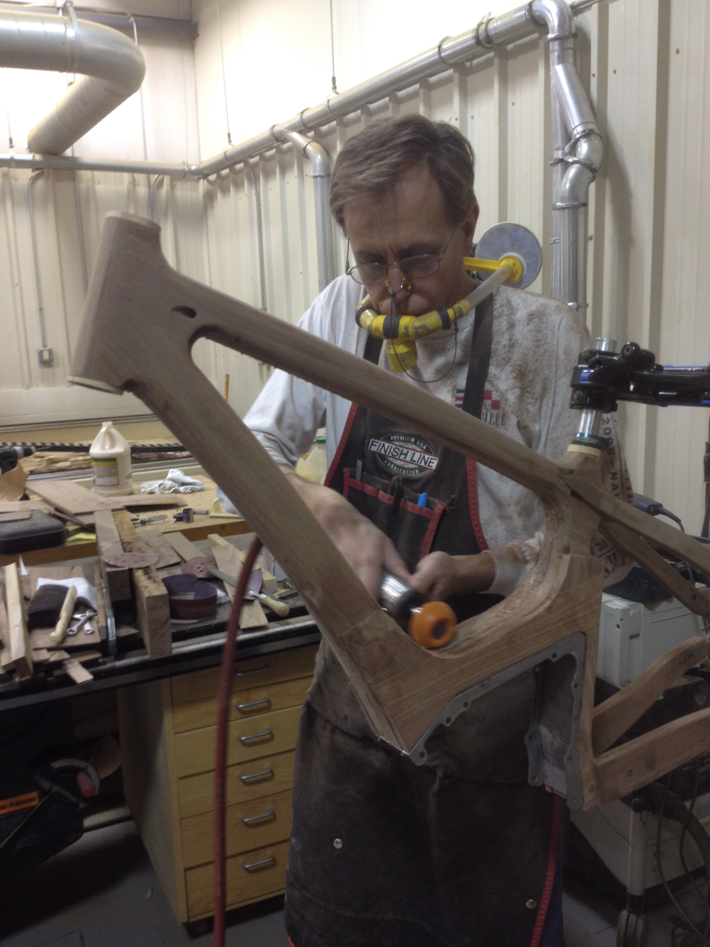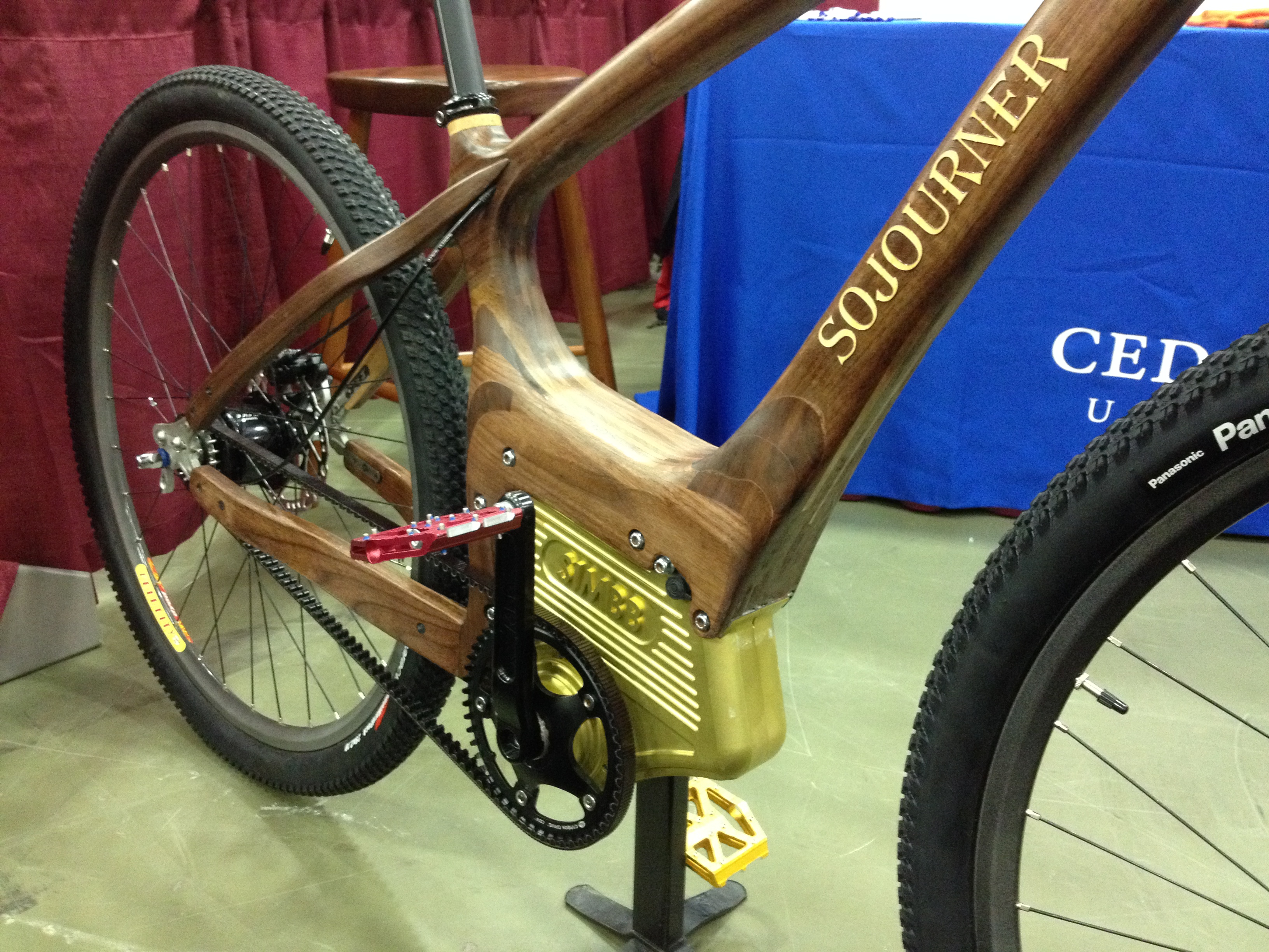 I partnered with the Jim Turner, the president of OptiBike (http://optibike.com/) to make an electric wooden bicycle. E-bikes are the wave of the future in sustainable transportation. What a great marriage, sustainable transportation framed by the most sustainable frame building material known to man – wood. More sustainable than bamboo (grass) because of all the carbon fiber used in construction.